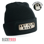 New 500 micron silicon black lettering /frame on original anfield road sign - available in 5 colours - One size only adults beanie hat with bobble.